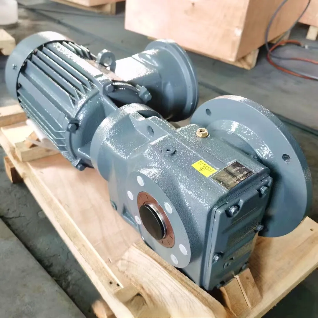 K series helical bevel geared motor is designed based on module, which bring many difference kinds of combinations, mounting types, and structure designs. The detail classification of ratio can meet various of working condition. High Transmission efficiency, low energy consumption and superior performance. The hard tooth surface gear use the high quality alloy steel, the process of carburizing and quenching, grinding, which give it following characters: Stable transmission, low noise and temperature, high loading and long working life.